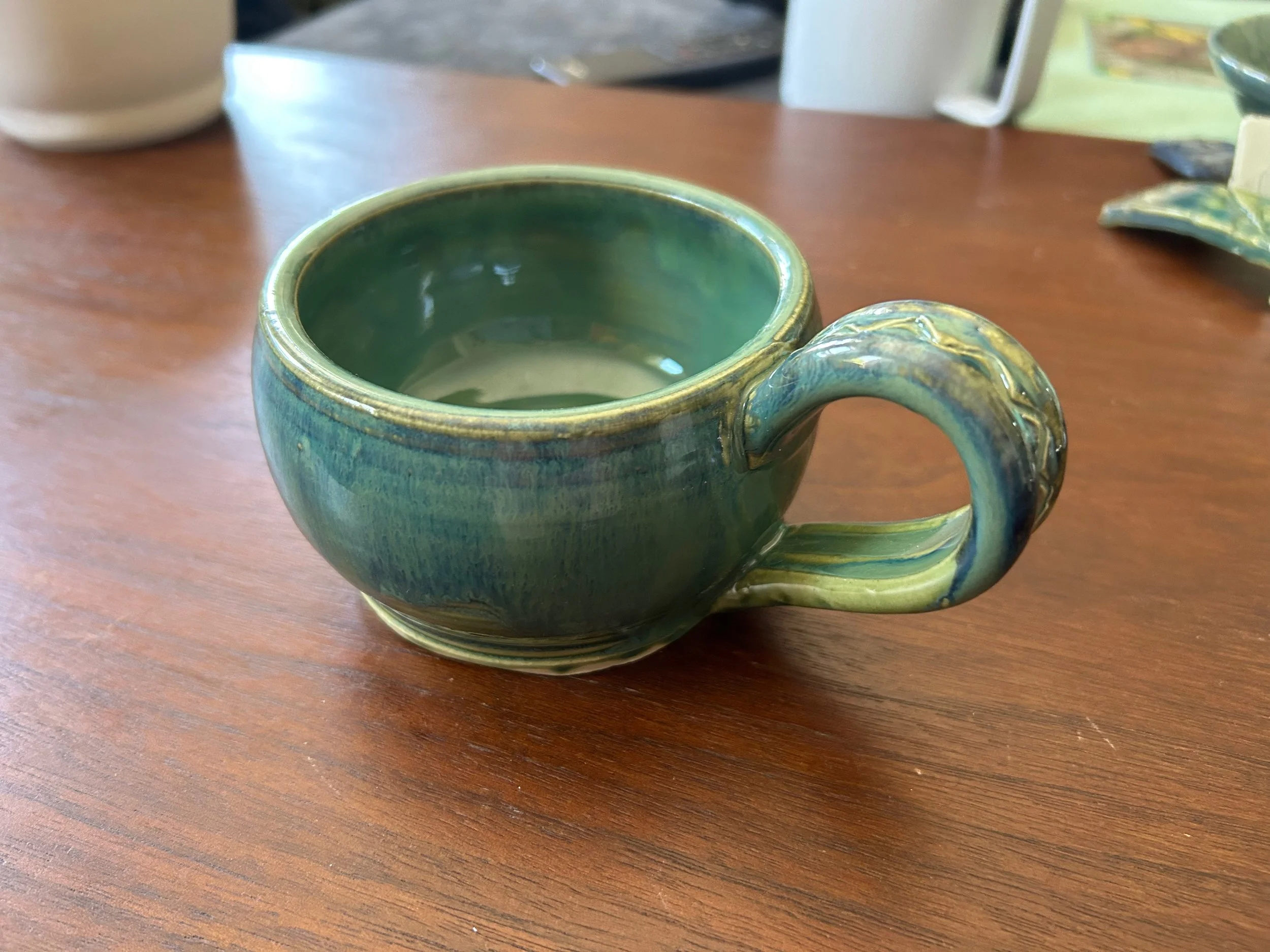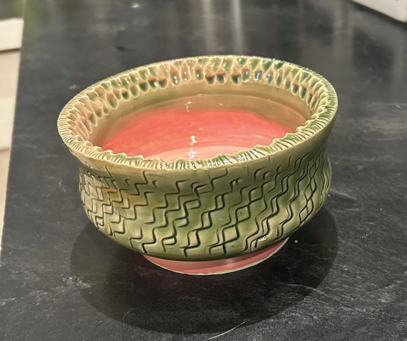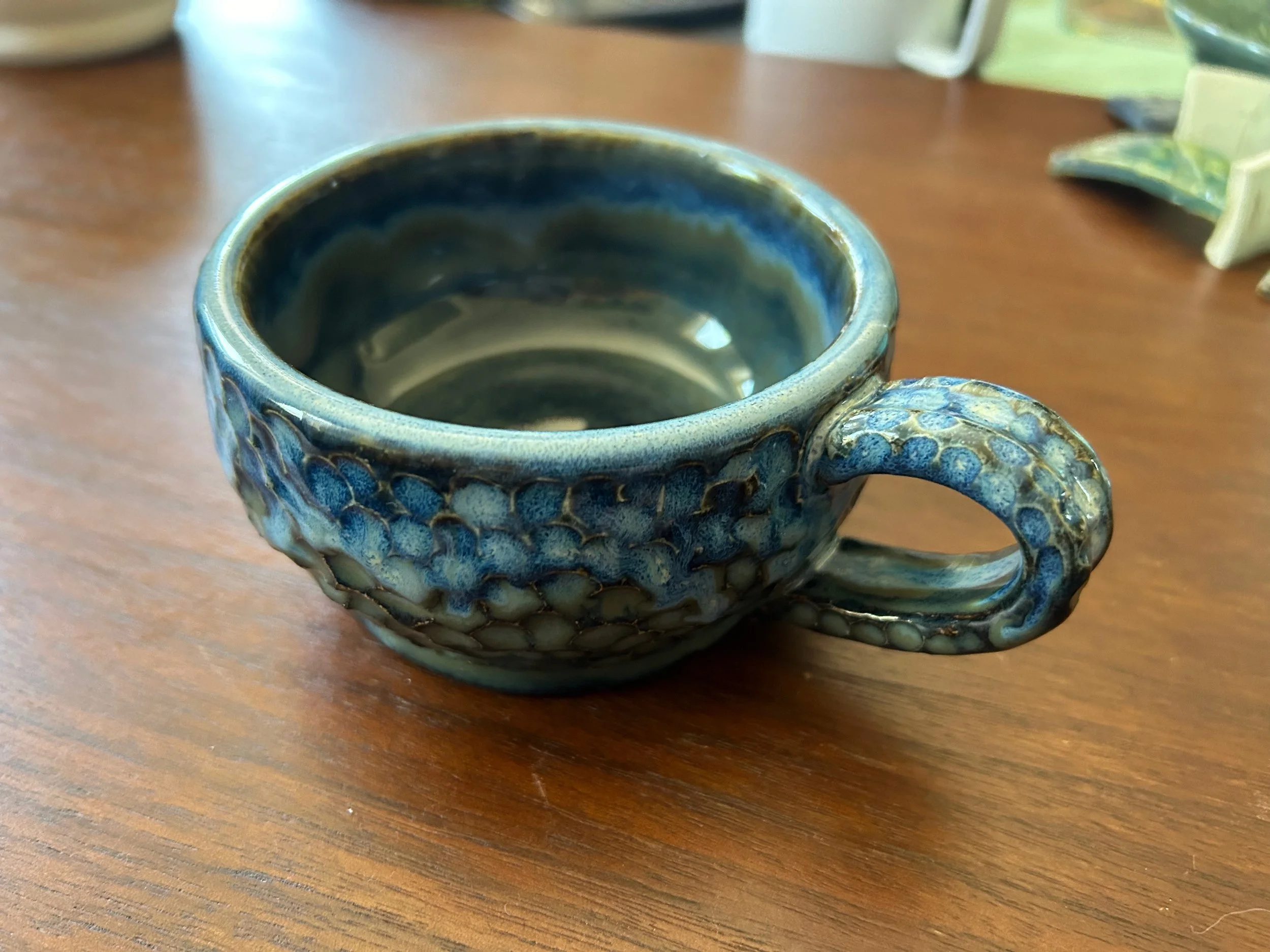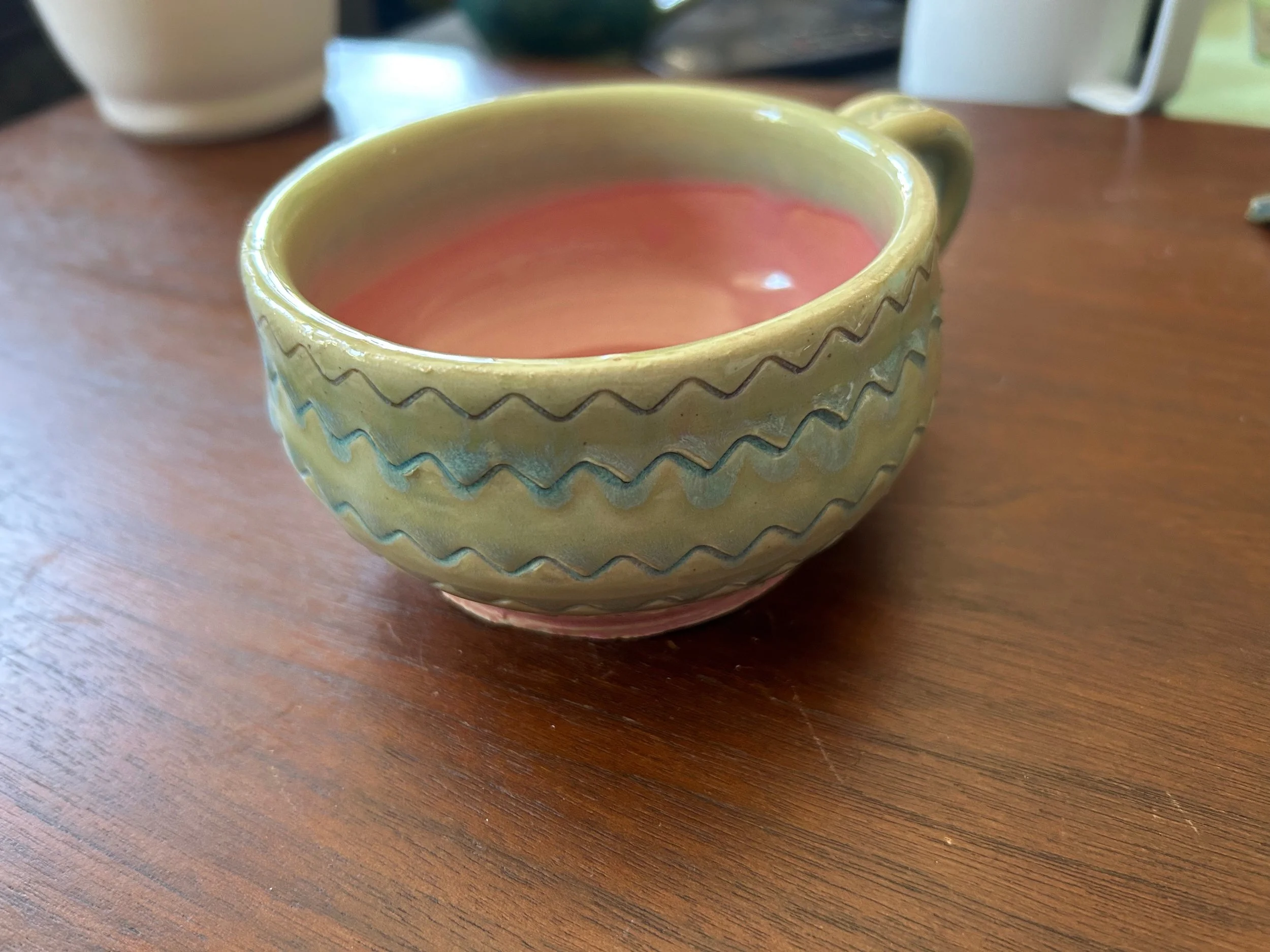 The bottom 3 items were painted on Amaco glazes (the third glaze listed is honey flux which should only cause the glazes to flow more and it was only applied at the top of the items):