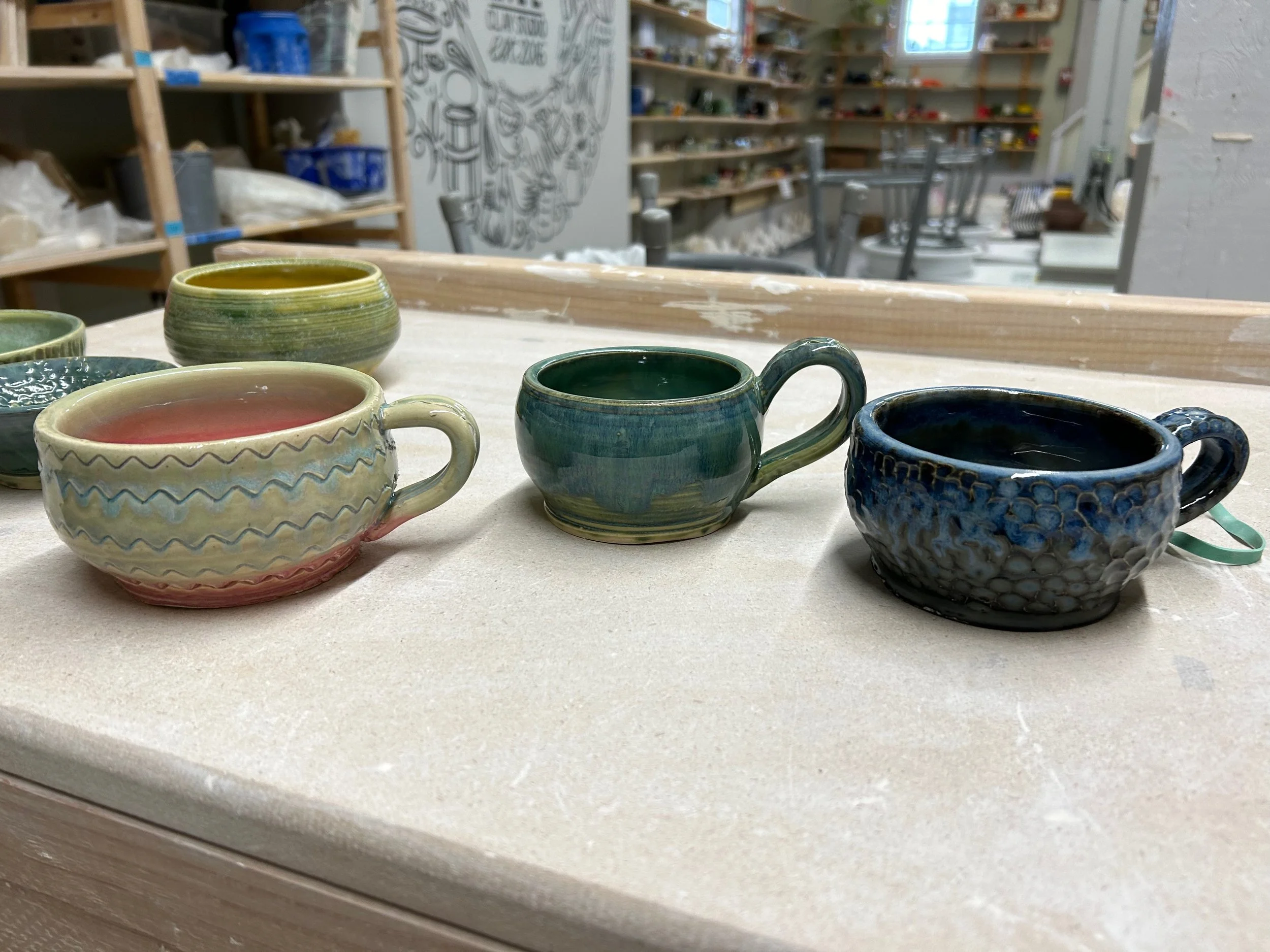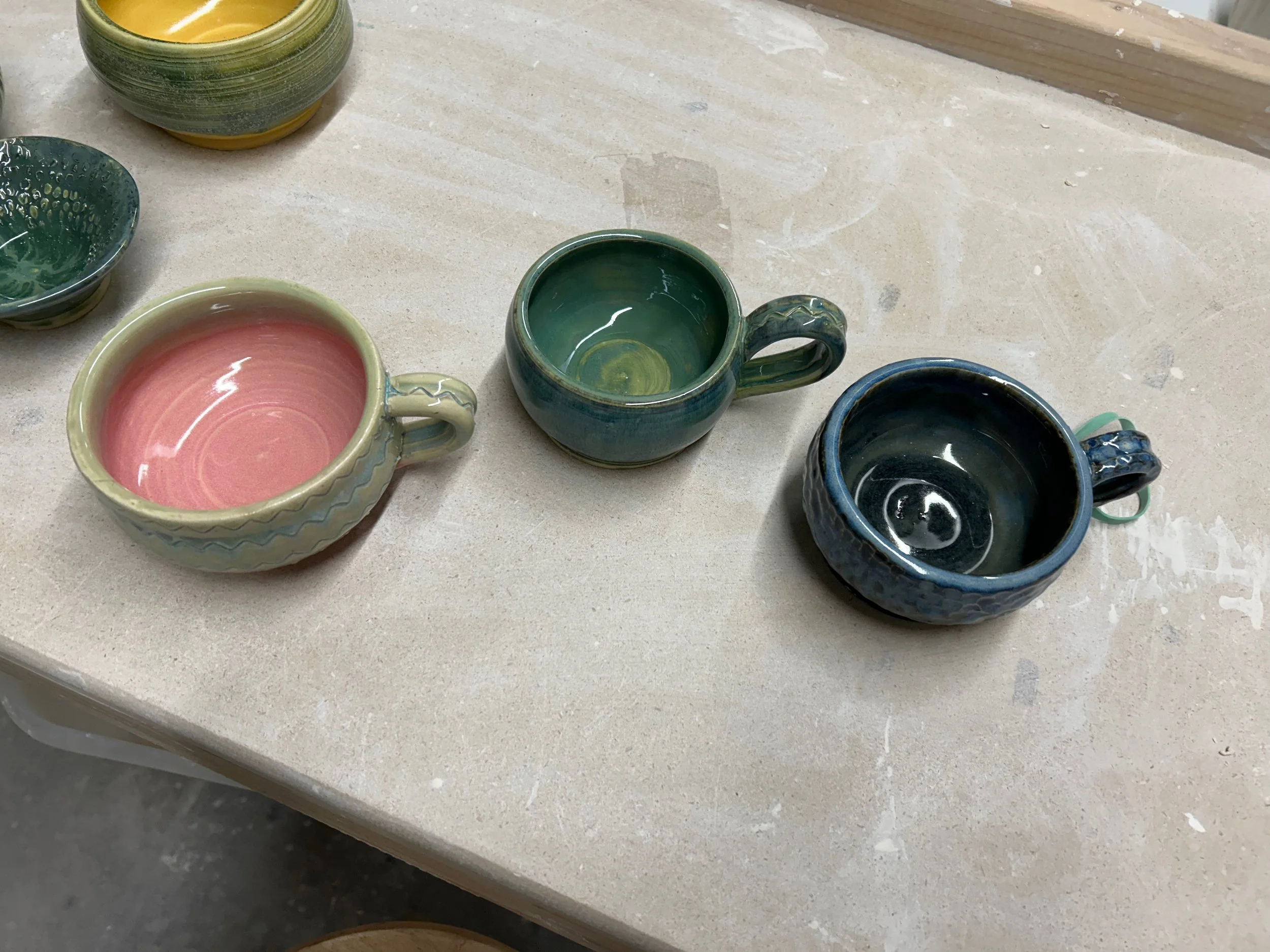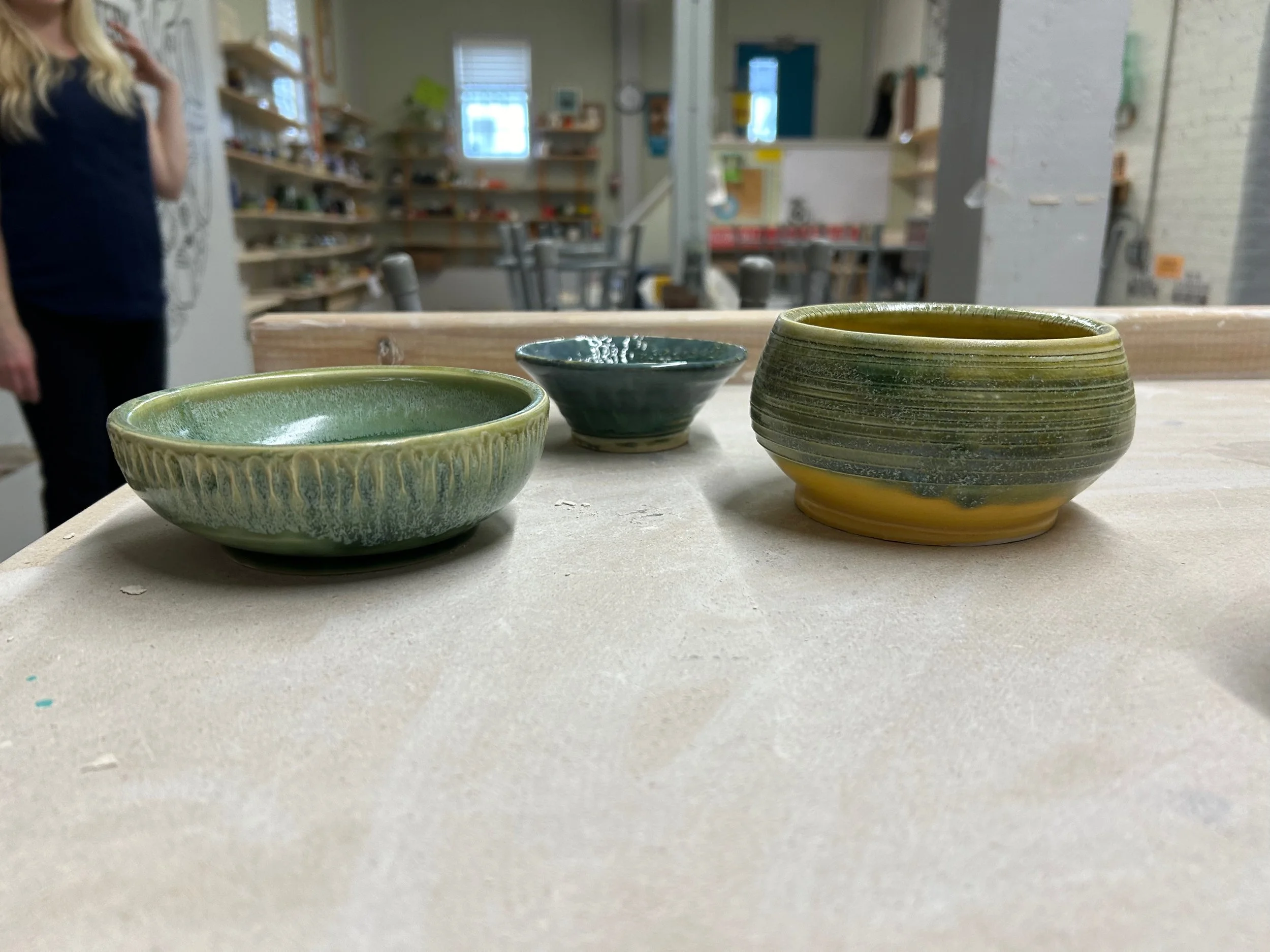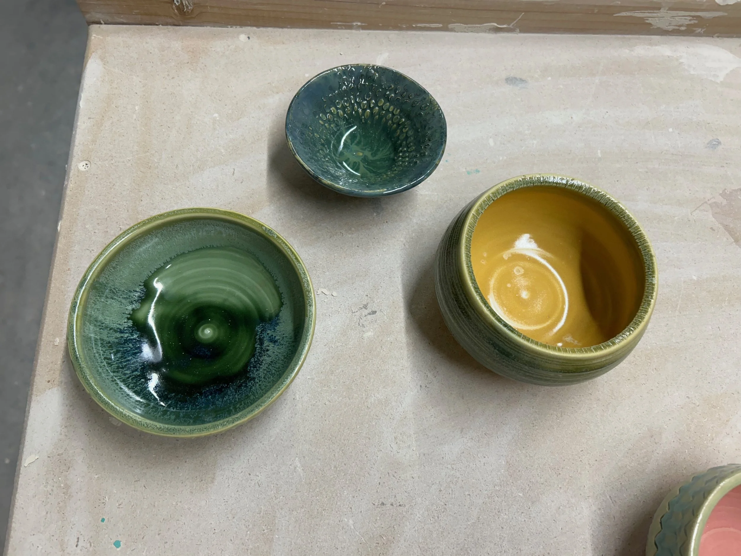 The top 3 items were glazed using the Pottery mill dipping glazes: